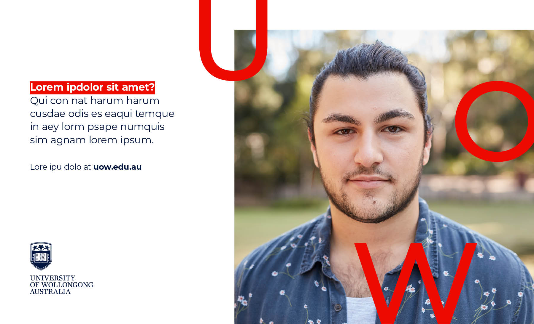 For consistent visual styling on UOW digital platforms, including websites, web applications, mobile applications and platforms, please refer to the component style guide. For more information or guidance please email the UOW Brand Inbox.