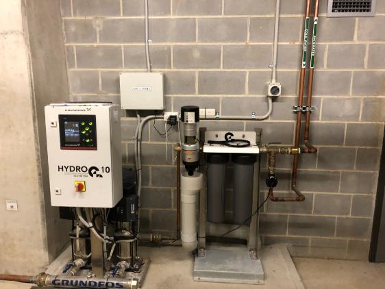 One example is at the Sustainable Building Research Centre (SBRC) on the Innovation campus which uses recycled rainwater except where local health and safety regulations require that potable water from public water supply must be used. Regular use of potable water in the SBRC is limited to the kitchen sink and dishwasher and a drinking fountain, and irregular use to safety appliances (with statutory requirements) such as a chemical safety shower and fire hydrants. All other water in the building is drawn from the 65,000 Litre underground rainwater tank. Both the rainwater and potable water usage is sub-metered and recorded in the building management system.