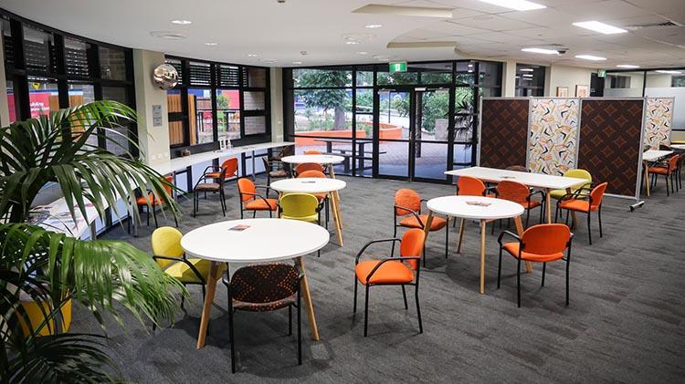 Funded jointly through the Student Services & Amenities Fee and Indigenous Student Success Program, the Centre has been designed to support our students to thrive. The Centre is now a culturally safe space featuring bright and engaging decor, collaborative, social and focus areas and a breathtaking courtyard with undercover seating for our students and the wider community. The focal point of the new look Centre is the spectacular custom made fire pit that is surrounded by a purpose built sandstone Yarning Circle. The courtyard is wrapped in beautiful bush medicine plants and features two Illawarra Flame trees.
