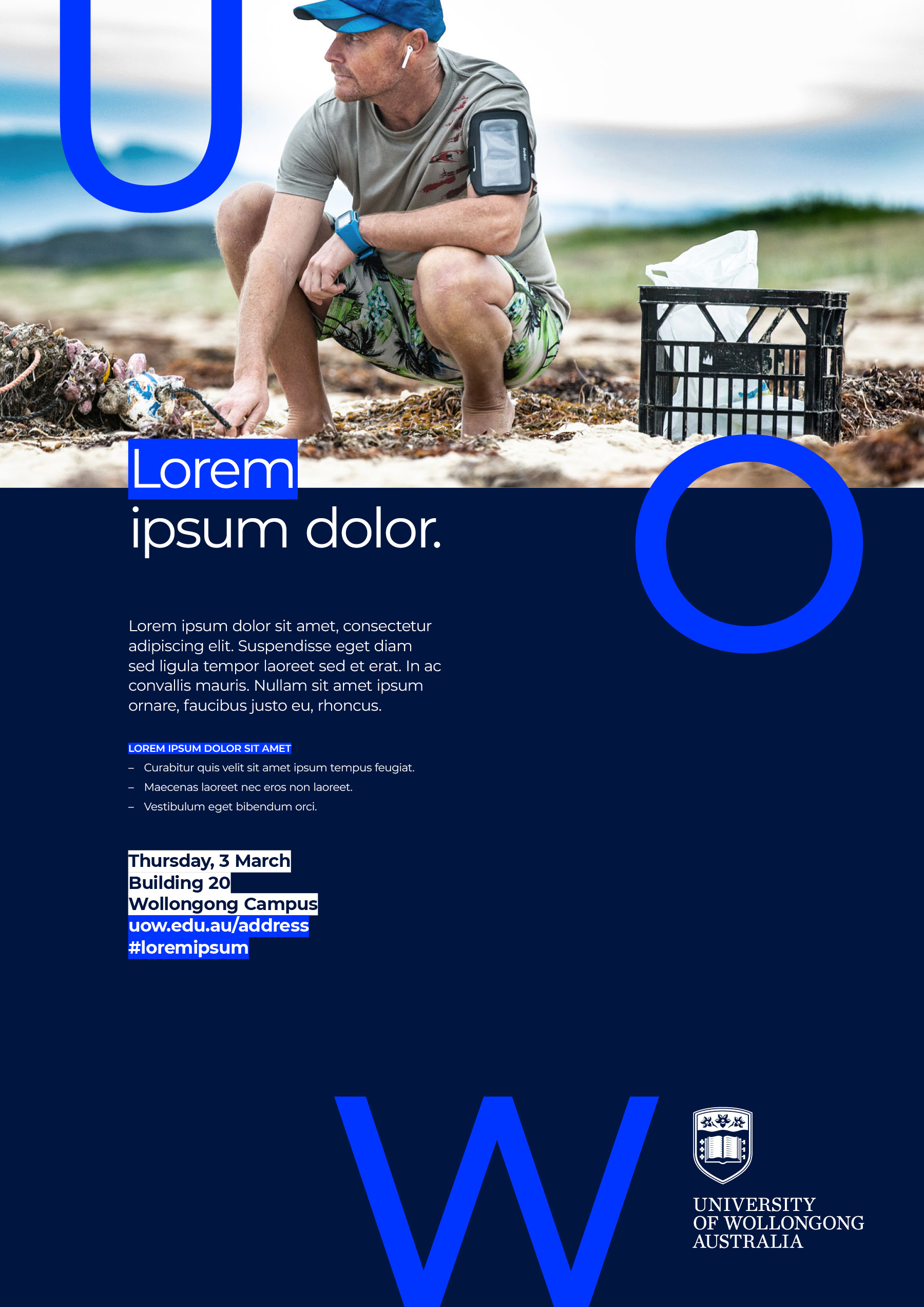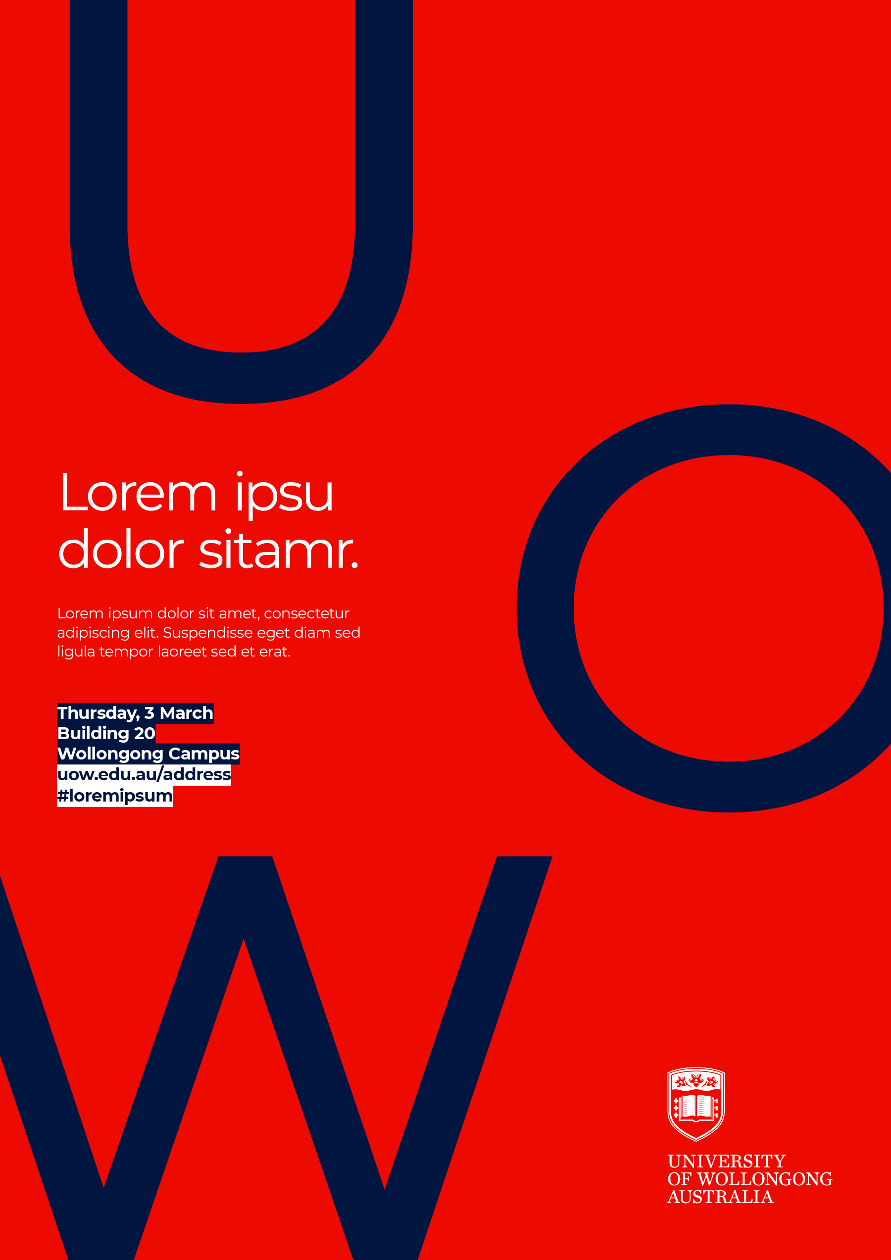 In addition to elements such as logo, the UOW framework can be used to frame content such as typography, imagery and graphic illustration.