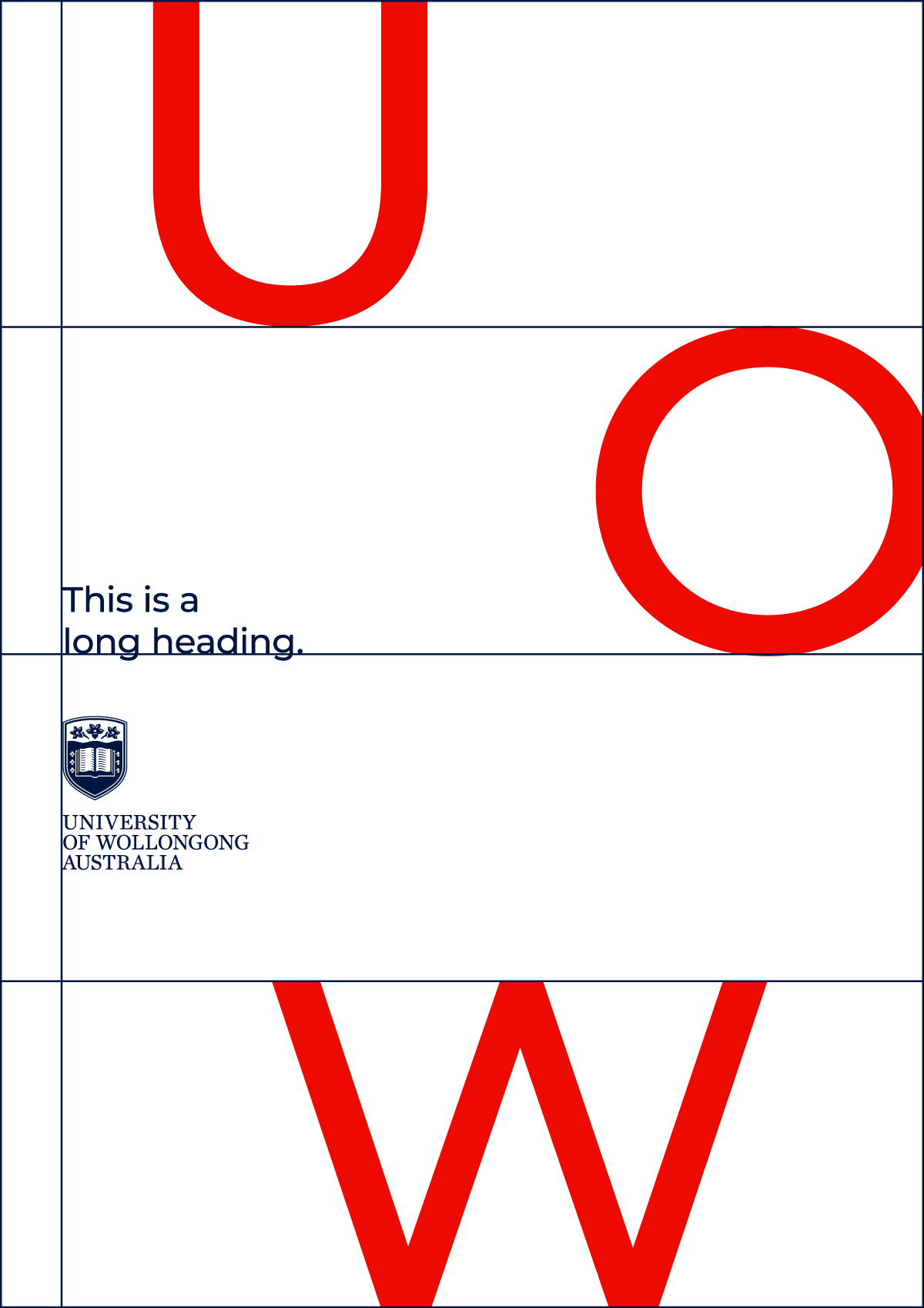 The UOW framework acts to frame content. The row system can be used to help guide the position of elements such as logo and headline. These are interchangeable, depending on where the UOW framework sits. As a guide, logo and headline can sit either ranged left or centred.