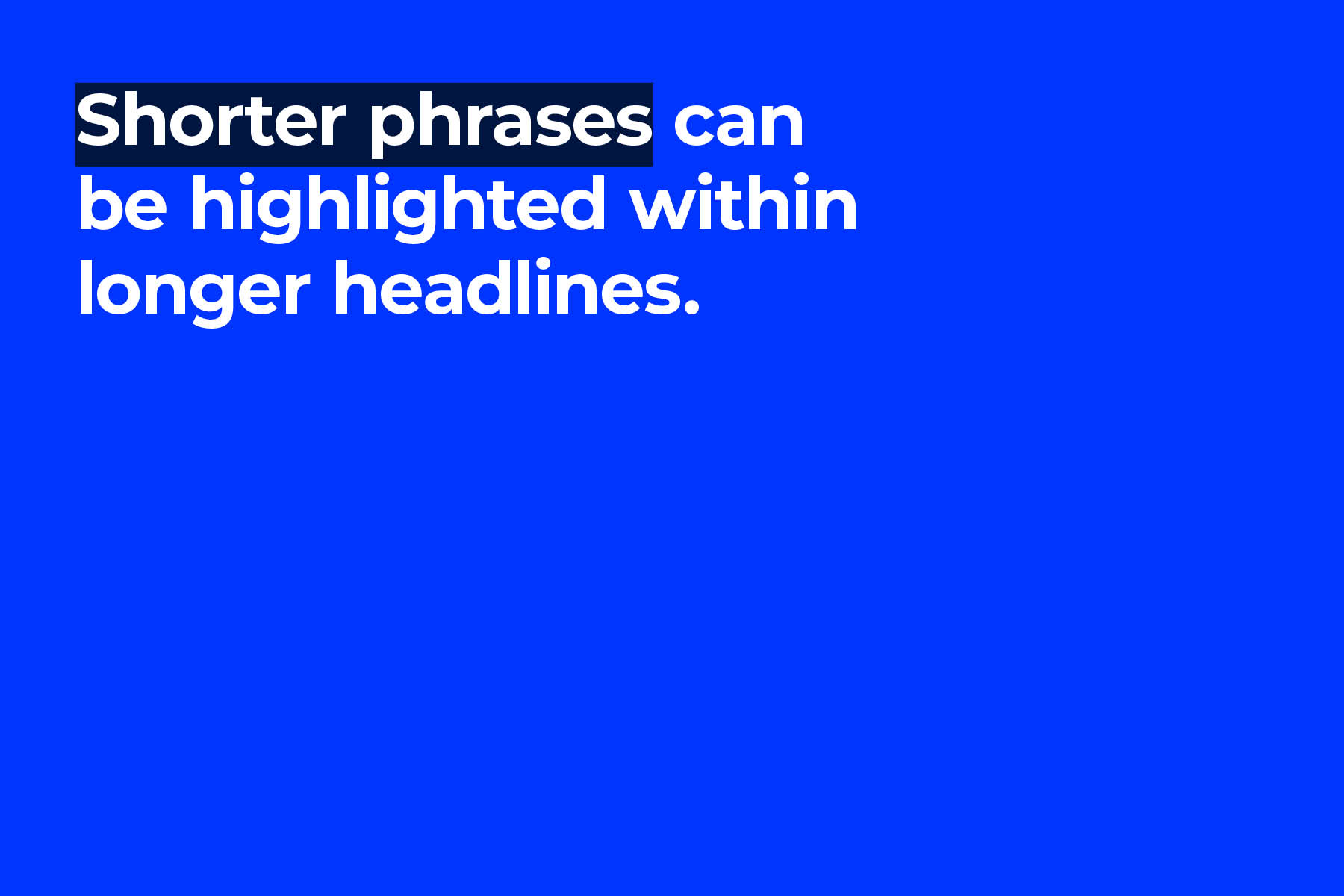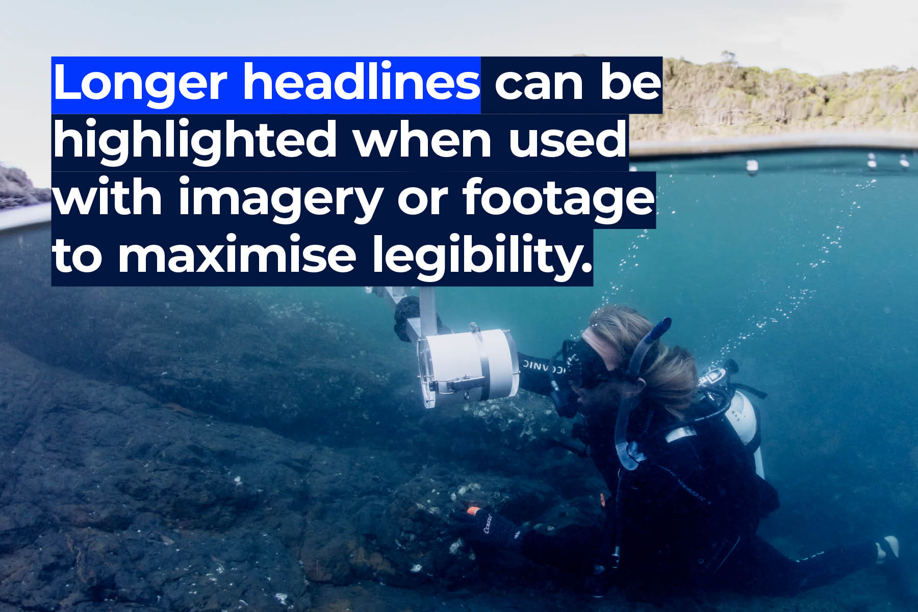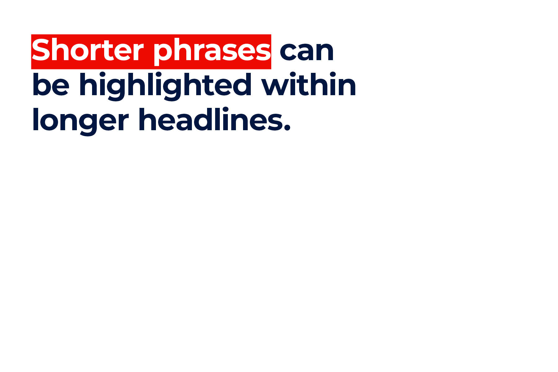 Another way to use highlight is when applying highlights to paragraphs that sit over imagery. Here, they provide legibility and stand-out to a message. As a general rule, use a White or Dark Blue underline and emphasise with either Red or Bright Blue.