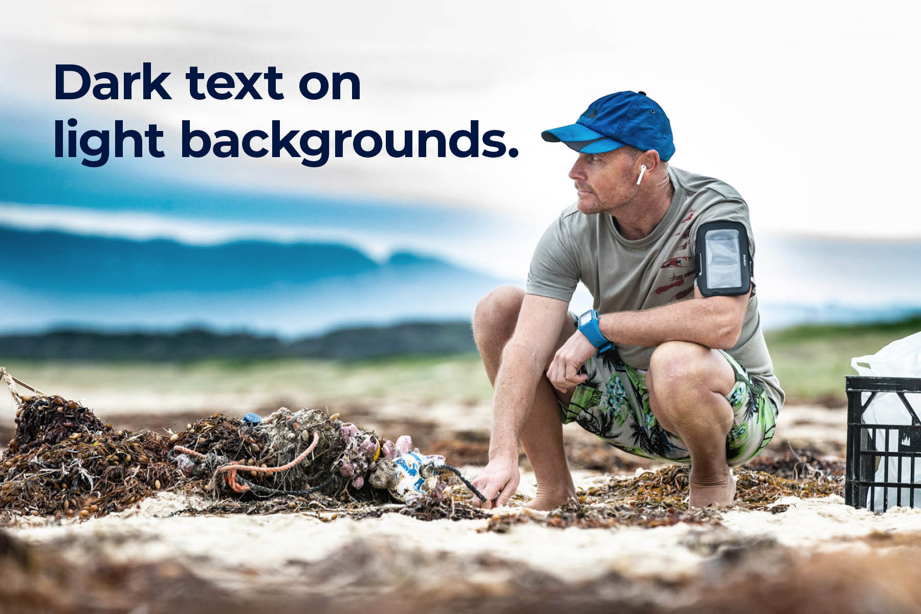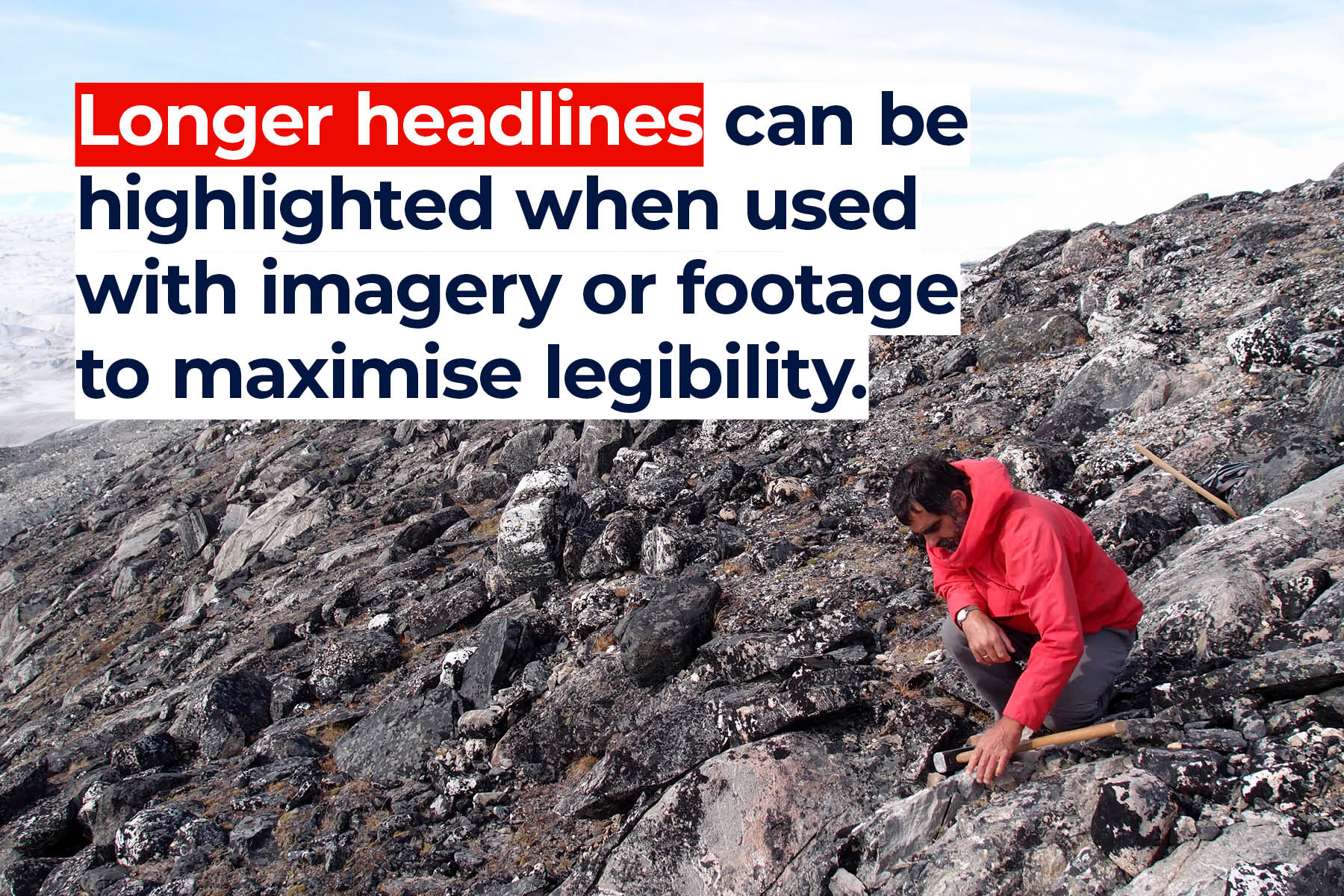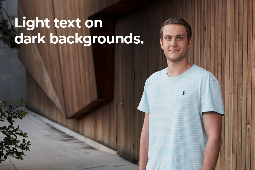 Ensure to retain legibility of type if placing directly on to imagery or footage. As a general rule, use light text on dark backgrounds and vice versa.