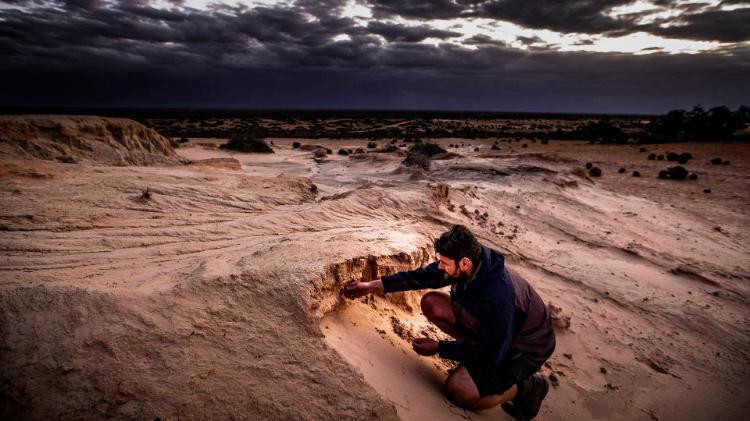 Dr Nathan Jankowski, Centre for Australian Biodiversity and Heritage, in the Willandra Lakes Region in western NSW