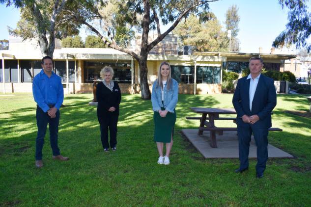 Pic: (L-R) Kieren Bennetts, Wilpinjong Coal, Maureen Hutchinson, Club Mudgee, Meg Kelly, scholarship recipient, and Des Kennedy, Mayor of Mid-Western Regional Council.