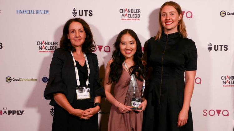 Nuala O'Donnell, Director of Graduate Career Development and Employment at UOW, Linda Le, winner of the First in Family Award, and Ashleigh Holmes, Employer Programs Officer at UOW. Photo: Supplied