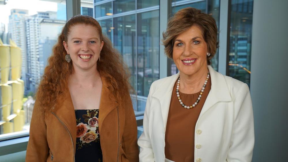 Meg Cummins, pictured with UOW Chancellor Christine McLoughlin.