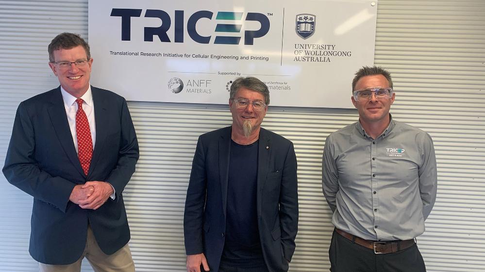 Federal Minister for Decentralisation and Regional Education the Hon. Andrew Gee MP, with TRICEP Director Distinguished Professor Gordon Wallace and Associate Director Associate Professor Stephen Beirne.