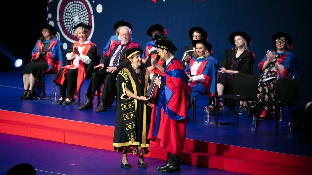 “I am honoured and blown away,” he said. “I have two children, and my family still lives on the South Coast, so every time we visit, we drive past the University, and I point it out to the kids. I explain to them what University means and how it can be part of their future.