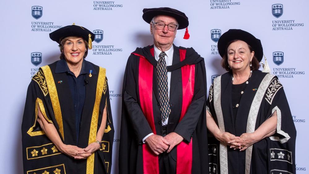 Chancellor Christine McLoughlin, Professor Nicholas Dixon and Vice-Chancellor Professor Patricia M Davidson.