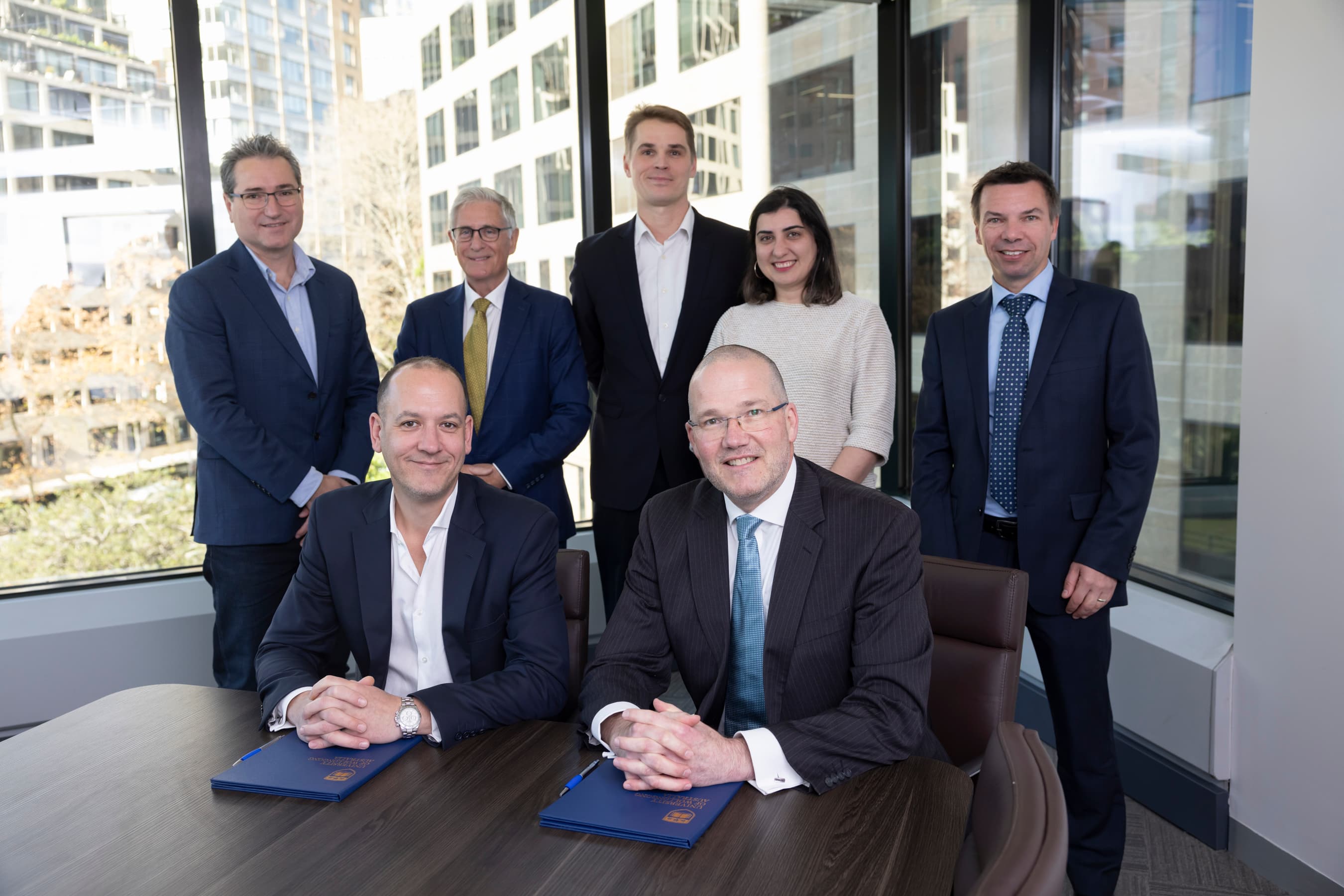 Front row (L-R): Jason Price, President and CEO, NEC Australia and New Zealand, and Professor David Currow, UOW Deputy Vice-Chancellor and Vice-President (Research and Sustainable Futures).