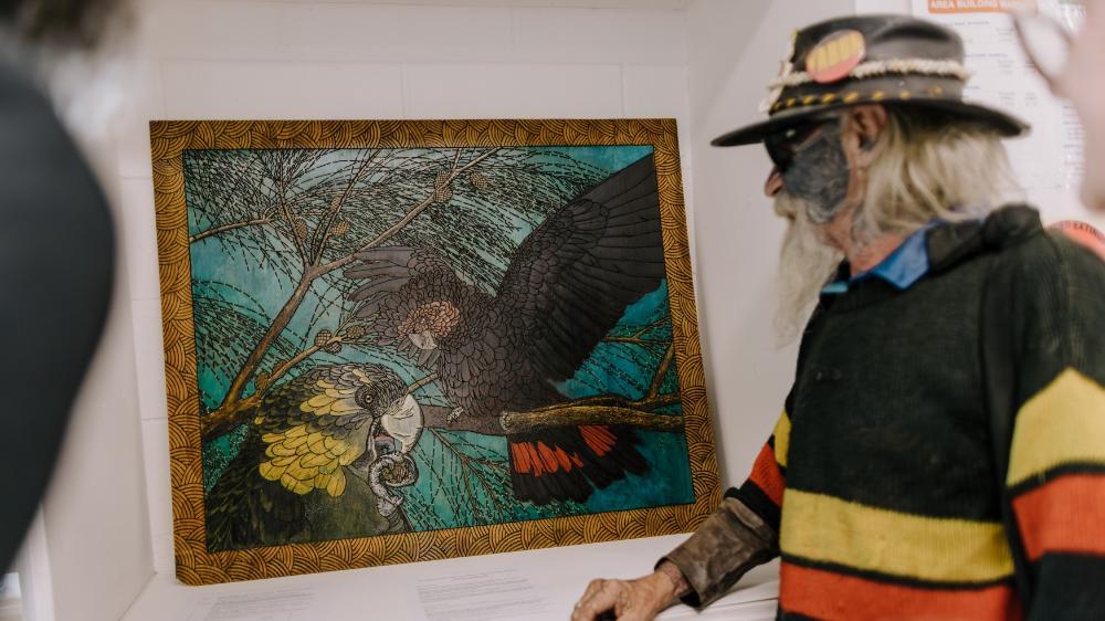 Artworks by Dr Jen Saunders, from UOW’s School of The Arts, English and Media, and Myangah Pirate, Yuin artist and knowledge-holder from Budawang mob, feature in ‘Stories From Right Here’, which launched this week (Monday 19 February) in the foyer of Building 25 at UOW's Wollongong campus.