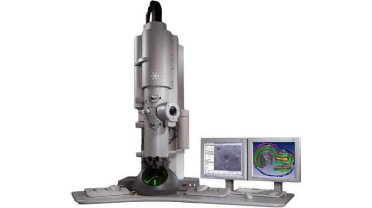 The FEI Tecnai T-12 G2 Spirit is our workhorse transmission electron microscope. This microscope operates at 120keV with a Lanthanum Hexaboride filament for bright imaging conditions. This system is used primarily for screening cryo and negative stained samples, general imaging, and training. This system utilizes a Teitz 16Mega pixel CCD camera and is suitable for most imaging applications.