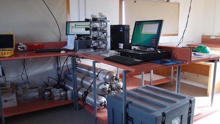 - Whilst at Macquarie Island, CAC members Clare Murphy and Alan Griffiths undertook some checks and tests on the instruments in the Clean Air Lab, including lowering and checking on the inlet mast and leak checking the radon detector.
