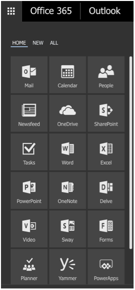 You can access Office365 online through your UOWmail account. When you are logged into your account, you will see a grid-like icon know as the ‘App Launcher’ in the top left-hand corner (see below).