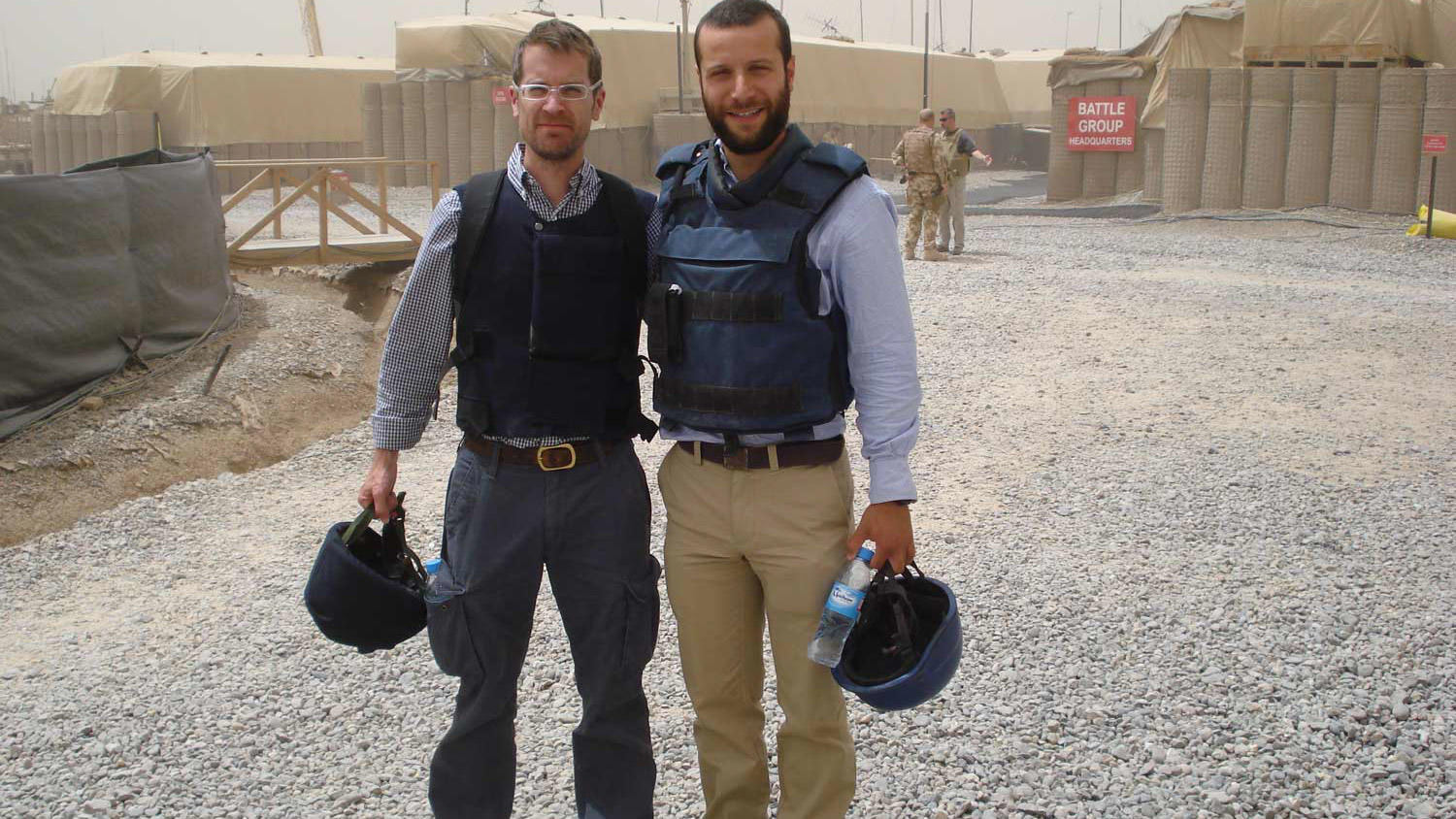 Professor Farrell (left) with British District Officer in Forward Operating Base Shawqat, Nad-e-Ali District, Helmand Province, Afghanistan, 2010.
