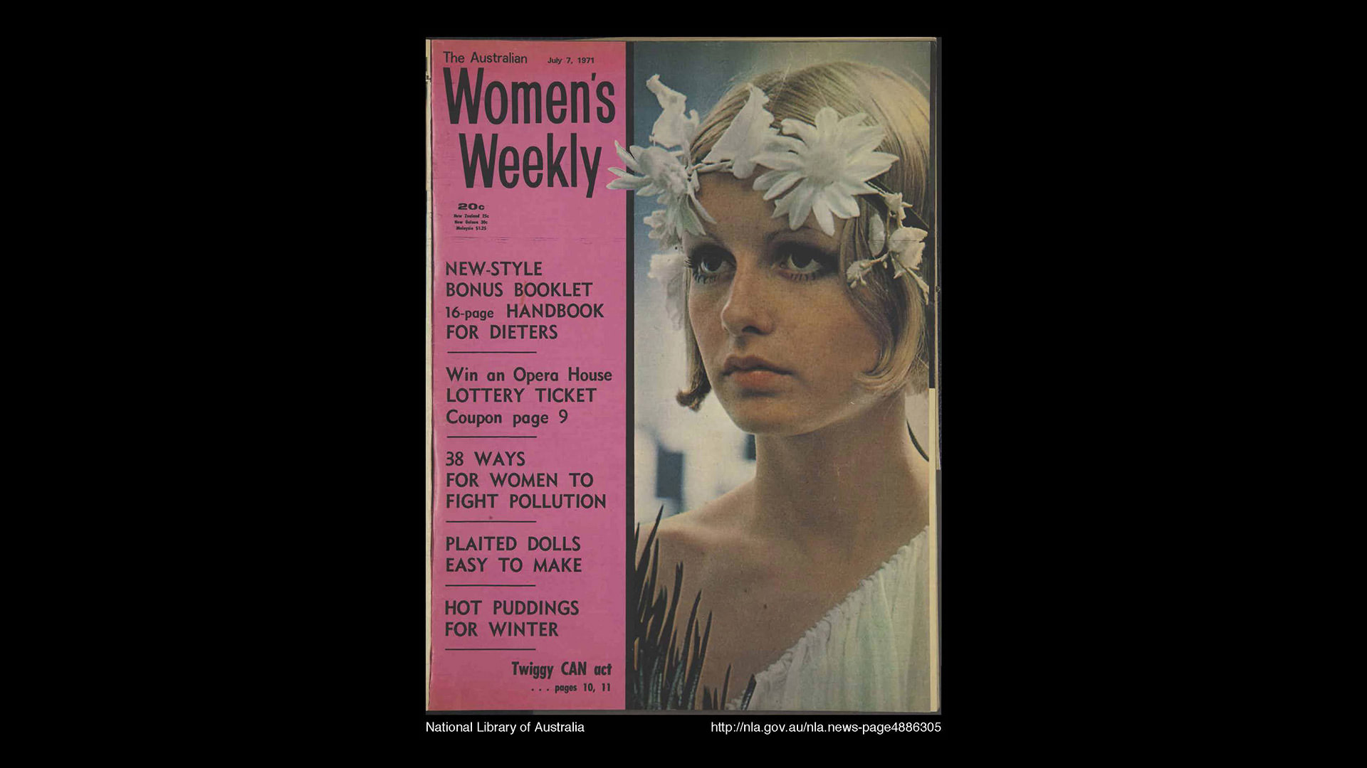 A 1971 cover of The Australian Women's Weekly, featuring the popular model Twiggy. Photo: National Library Archives
