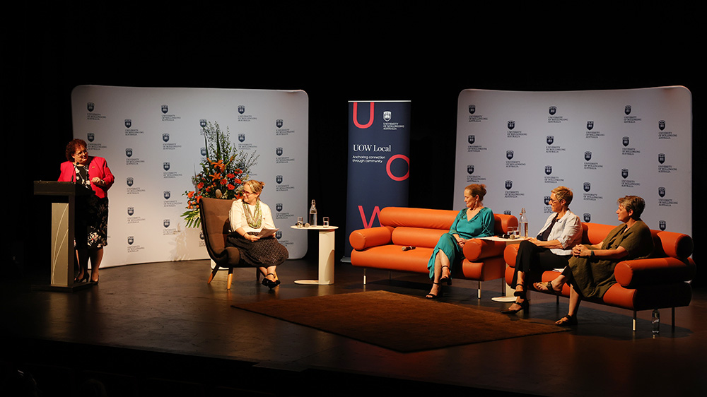 And we're privileged to have an incredible cohort of local women address us and as well as the Sydney Morning Herald social affairs writer Caitlin Fitzsimmons who will moderate tonight's panel and our panelists are Professor Trish Mundy UOW Chief Integrity Officer, Sally Stevenson the Executive Director of the Illawarra Women's Health Center and SASI board member and Catherine Moyle, I've said it earlier sorry Gamilaroi woman and UOW Conscious Community lead. Unfortunately we have an apology from Rachel Foster from the Housing Trust who is enable to join us but fortunately the Deputy Lord Mayor of Wollongong is in the room and is able to step in so I will put another hat on we may have a costume change and I'll join the panel at very last minute so I will talk from a council perspective. But it is my pleasure to introduce Caitlin of our UOW alumni who will moderate our panel she's an award-winning journalist specialising in economics and social issues including housing and gender equality. In her varied career she's worked in Sydney London and San Francisco and as mentioned is a social affairs writer for the Sydney Morning Herald and the former Editor of Money. I'll hand over to Caitlin [Applause]